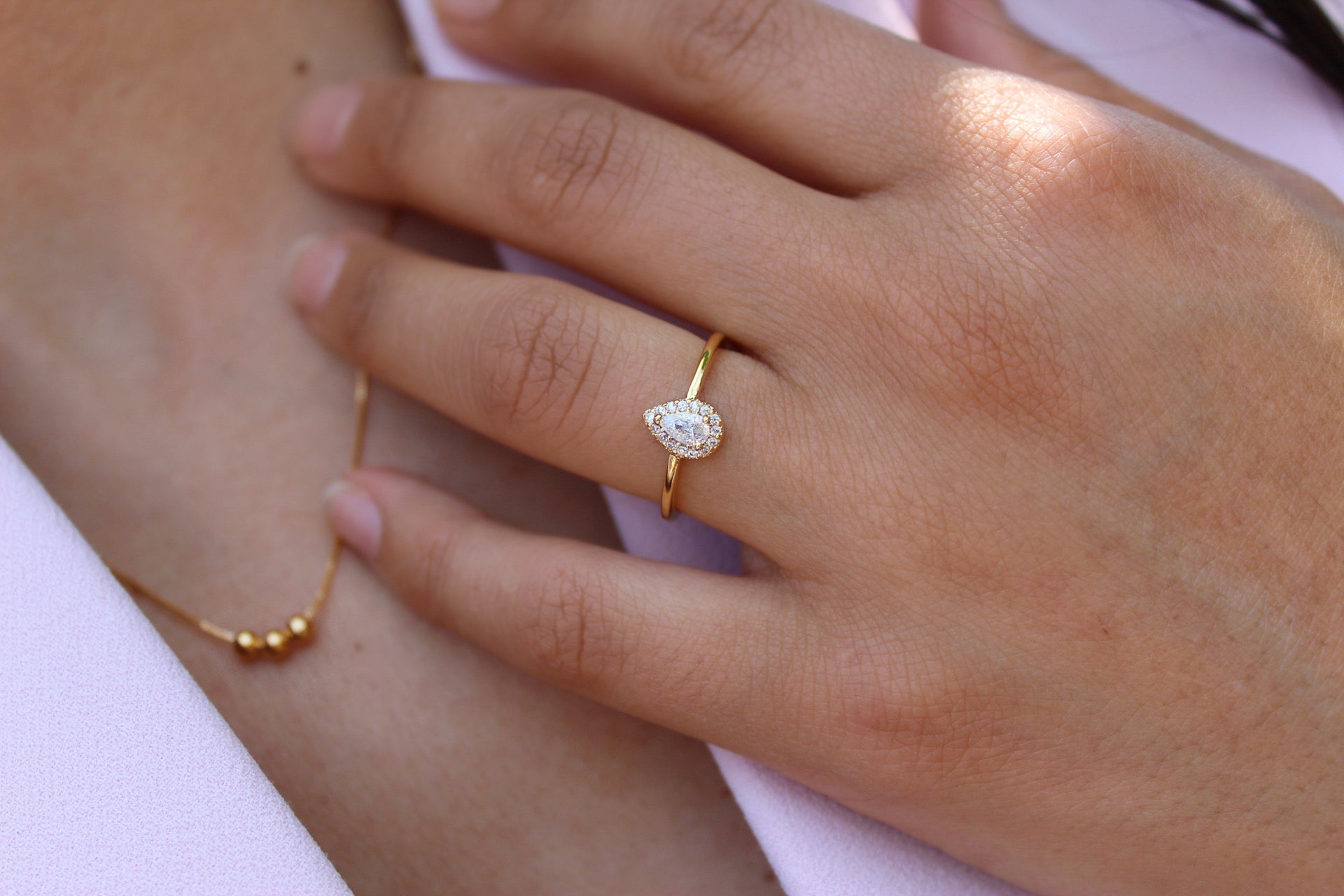 El anillo Drops Frost de ANANDA GALEA®️ ha sido diseñado pensando en tu bienestar y estilo. Gracias a que es libre de níquel y plomo, cuidará tu piel. Fabricado con materiales nobles y de calidad superior, esta joya está enchapada en oro de 18 quilates.
