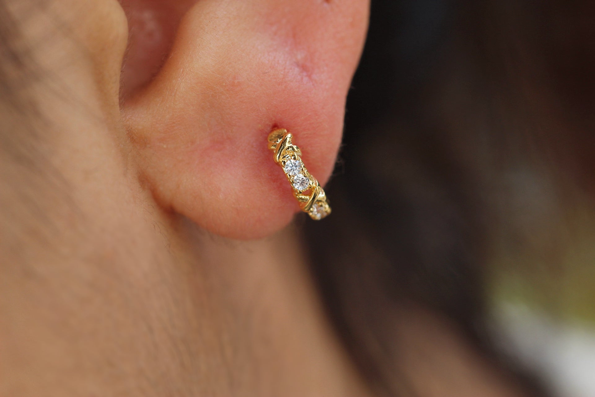 Material: Enchapado en oro de 18 quilates, circones originales por ambos frentes de la argolla.