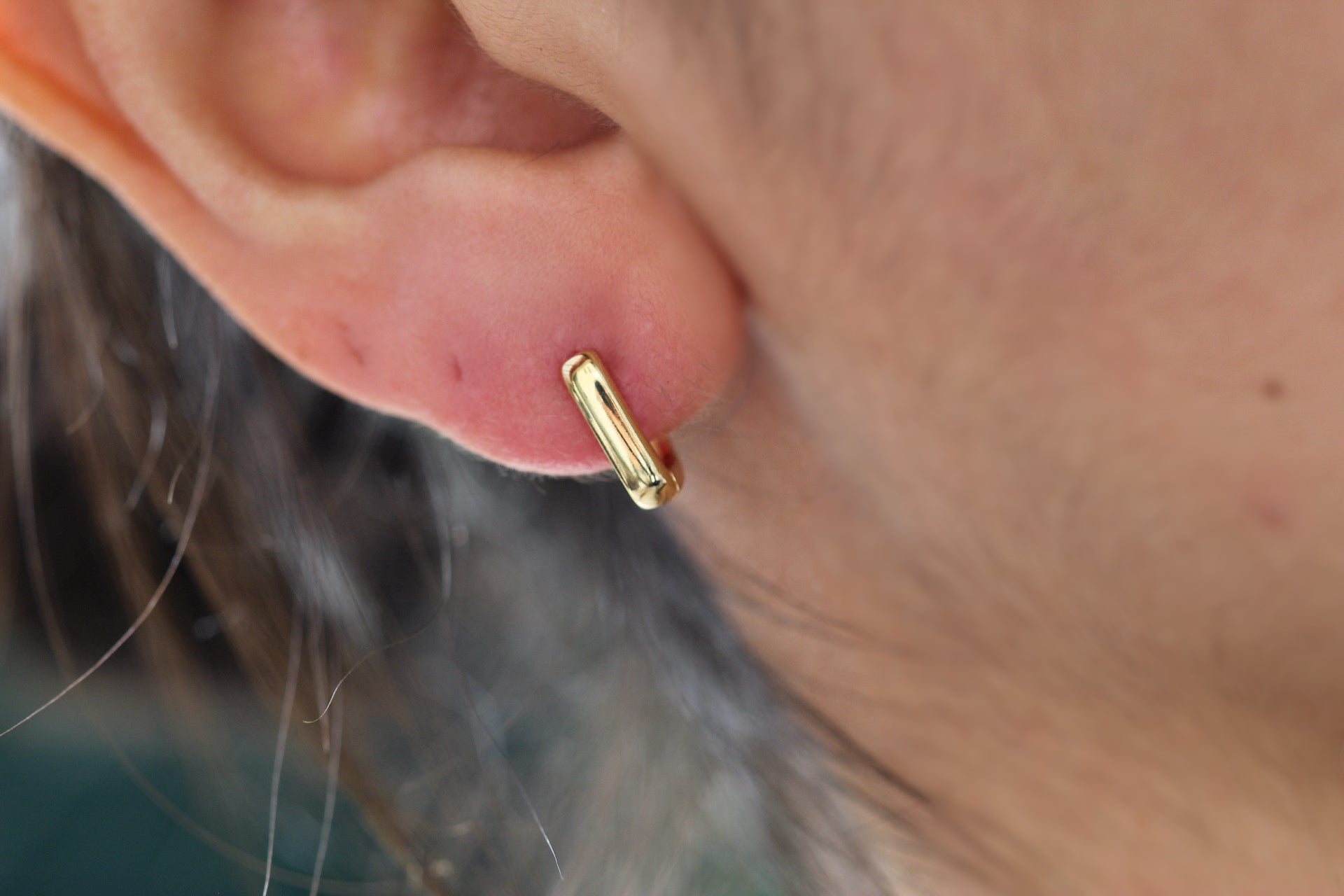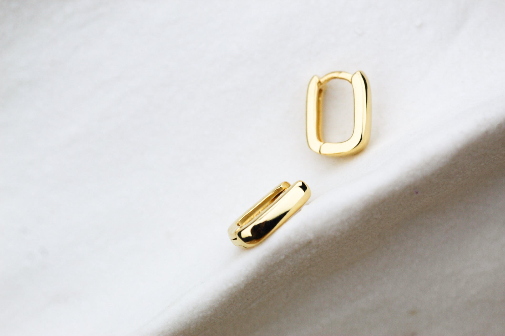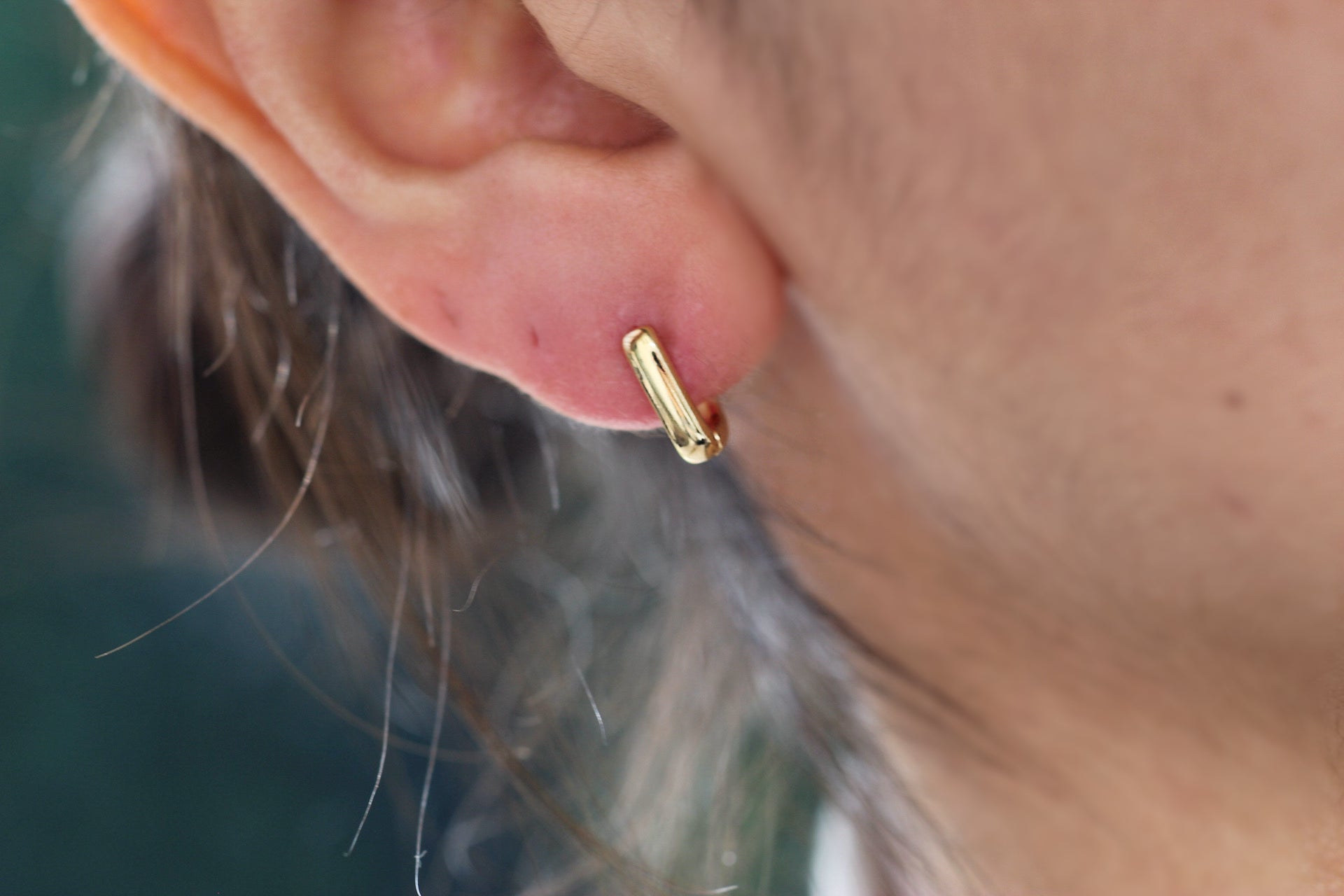 Su diseño rectangular aporta un aire original sin perder la versatilidad de una pieza atemporal. Argollas ideales para sumar personalidad a cualquier look.