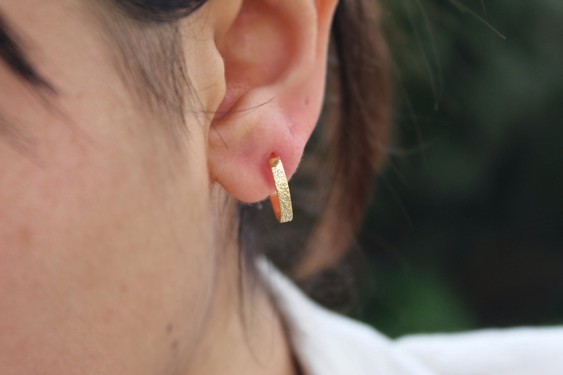 Las Argollas Satin 1,4 de ANANDA GALEA®️ han sido diseñadas pensando en tu bienestar y estilo. Gracias a que están libres de níquel y plomo, cuidarán tu piel. Fabricadas con materiales nobles y de calidad superior, esta joya está enchapada en oro de 18 quilates.