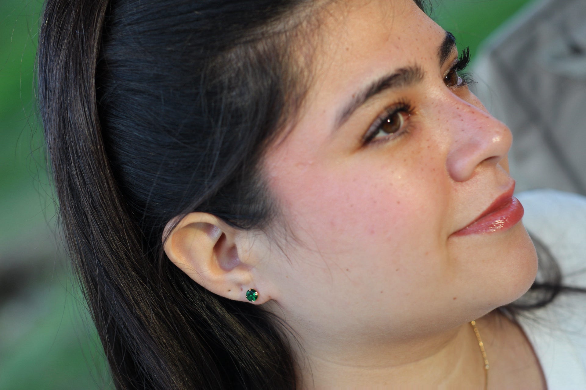 Los aros Luz Verde E. 6 m de ANANDA GALEA®️ han sido diseñados pensando en tu bienestar y estilo. Gracias a que están libres de níquel y plomo, cuidarán tu piel. Fabricados con materiales nobles y de calidad superior, esta joya está enchapada en oro de 18 quilates.