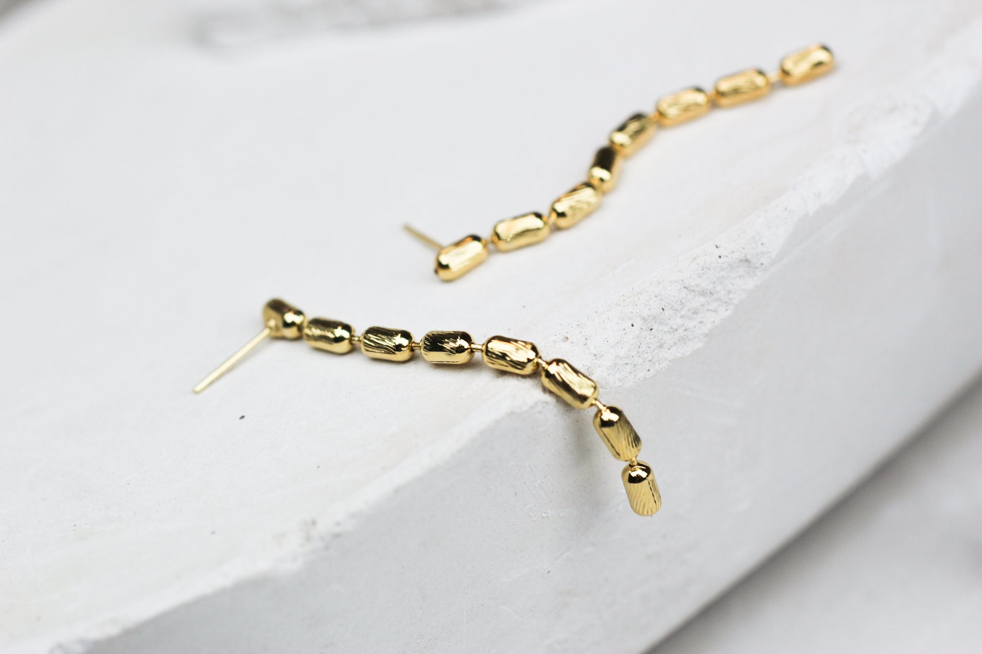 Los aros Petrona Satin de ANANDA GALEA®️ han sido diseñados pensando en tu bienestar y estilo. Gracias a que están libres de níquel y plomo, cuidarán tu piel. Fabricados con materiales nobles y de calidad superior, esta joya está enchapada en oro de 18 quilates.