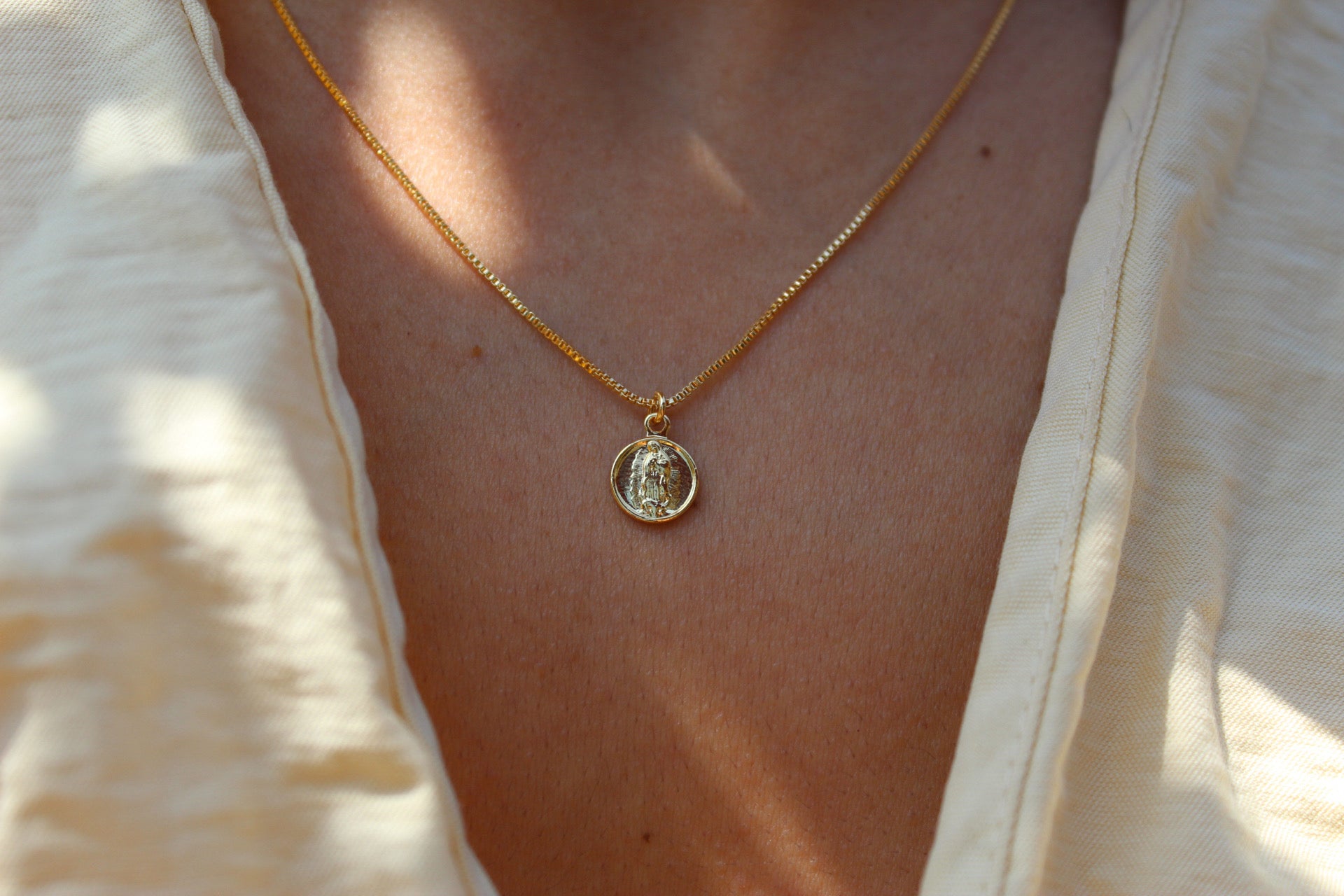 El collar BB Virgen de Guadalupe de ANANDA GALEA®️ ha sido diseñado pensando en tu bienestar y estilo. Gracias a que es libre de níquel y plomo, cuidará tu piel. Fabricado con materiales nobles y de calidad superior, esta joya está enchapada en oro de 18 quilates.