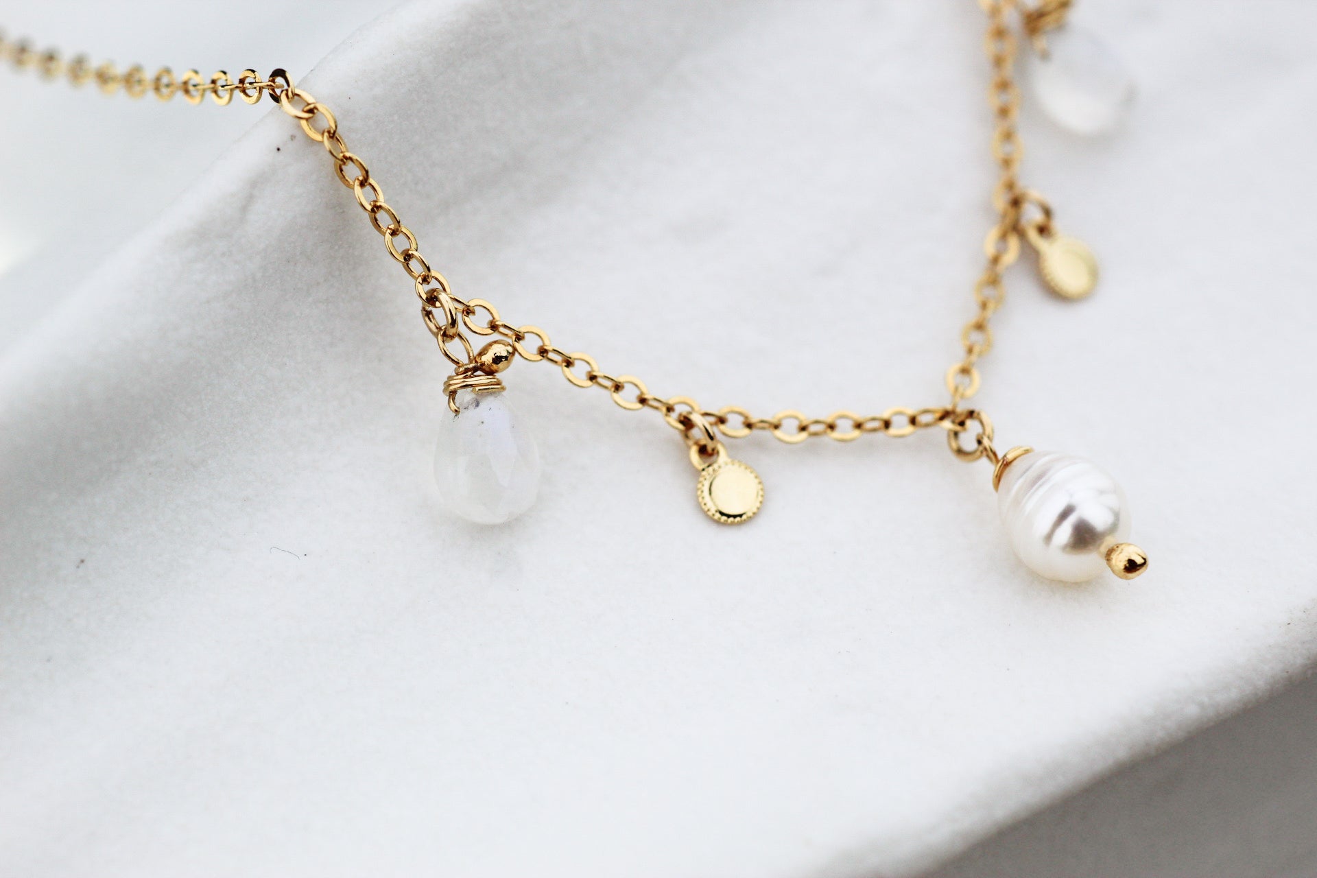 Collar Copelia Piedra Luna + Perla, energía femenina en equilibrio.