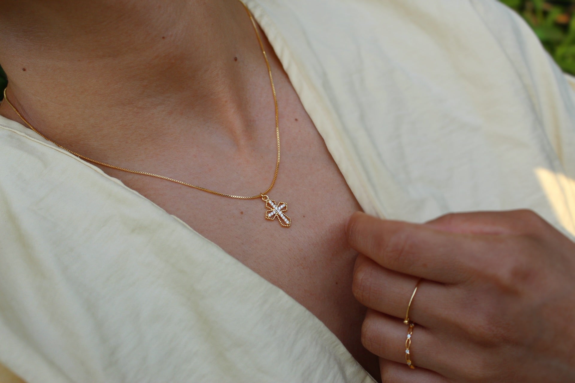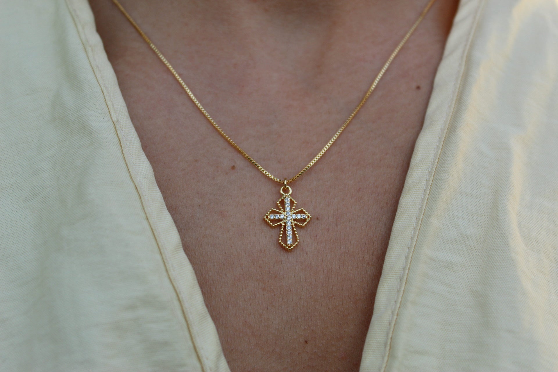 El collar Cruz Cali Frost II de ANANDA GALEA®️ ha sido diseñado pensando en tu bienestar y estilo. Gracias a que es libre de níquel y plomo, cuidará tu piel. Fabricado con materiales nobles y de calidad superior, esta joya está enchapada en oro de 18 quilates.