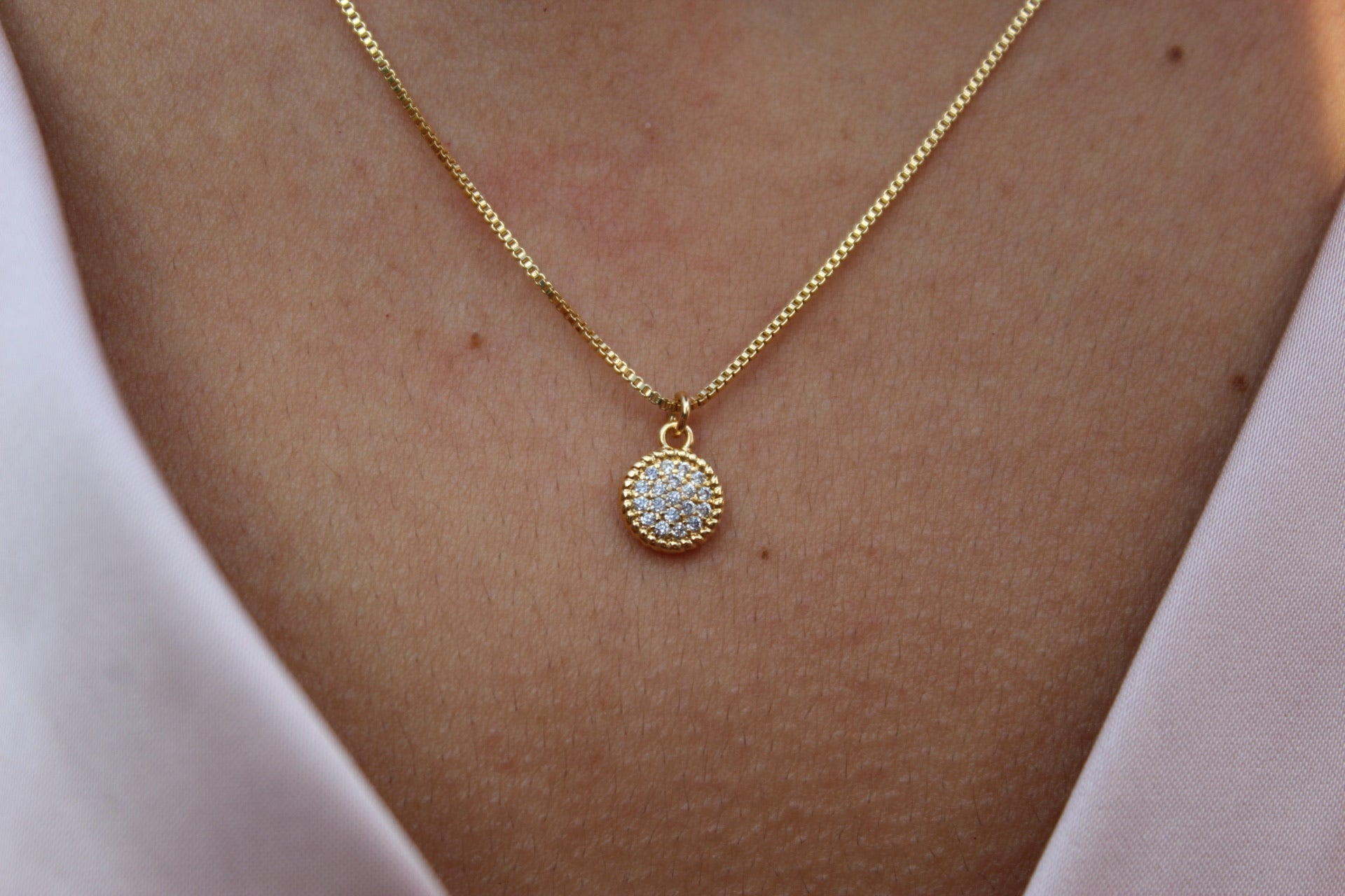 Esta medalla combina brillo y forma en una joya con presencia, ideal para marcar momentos importantes.