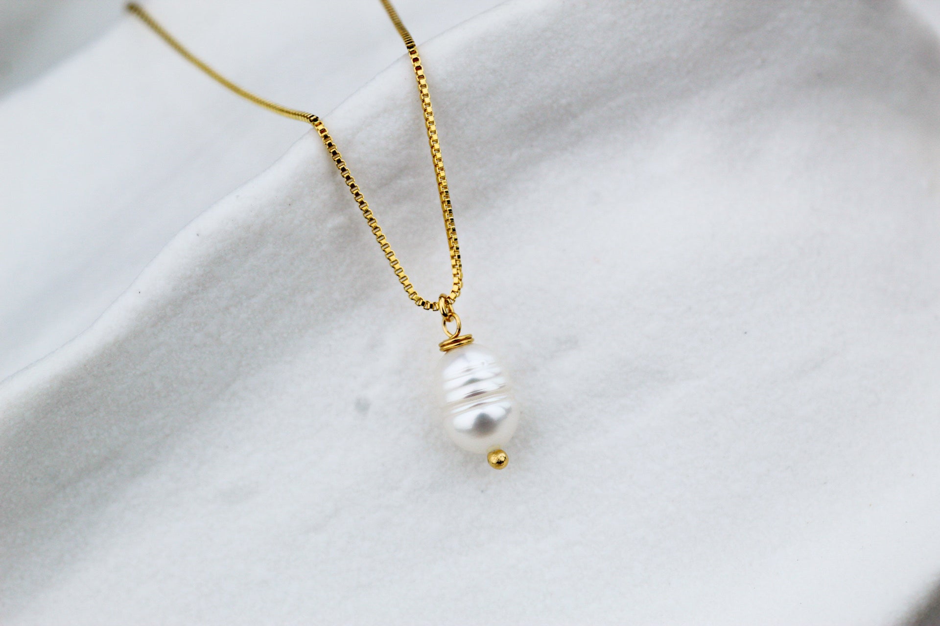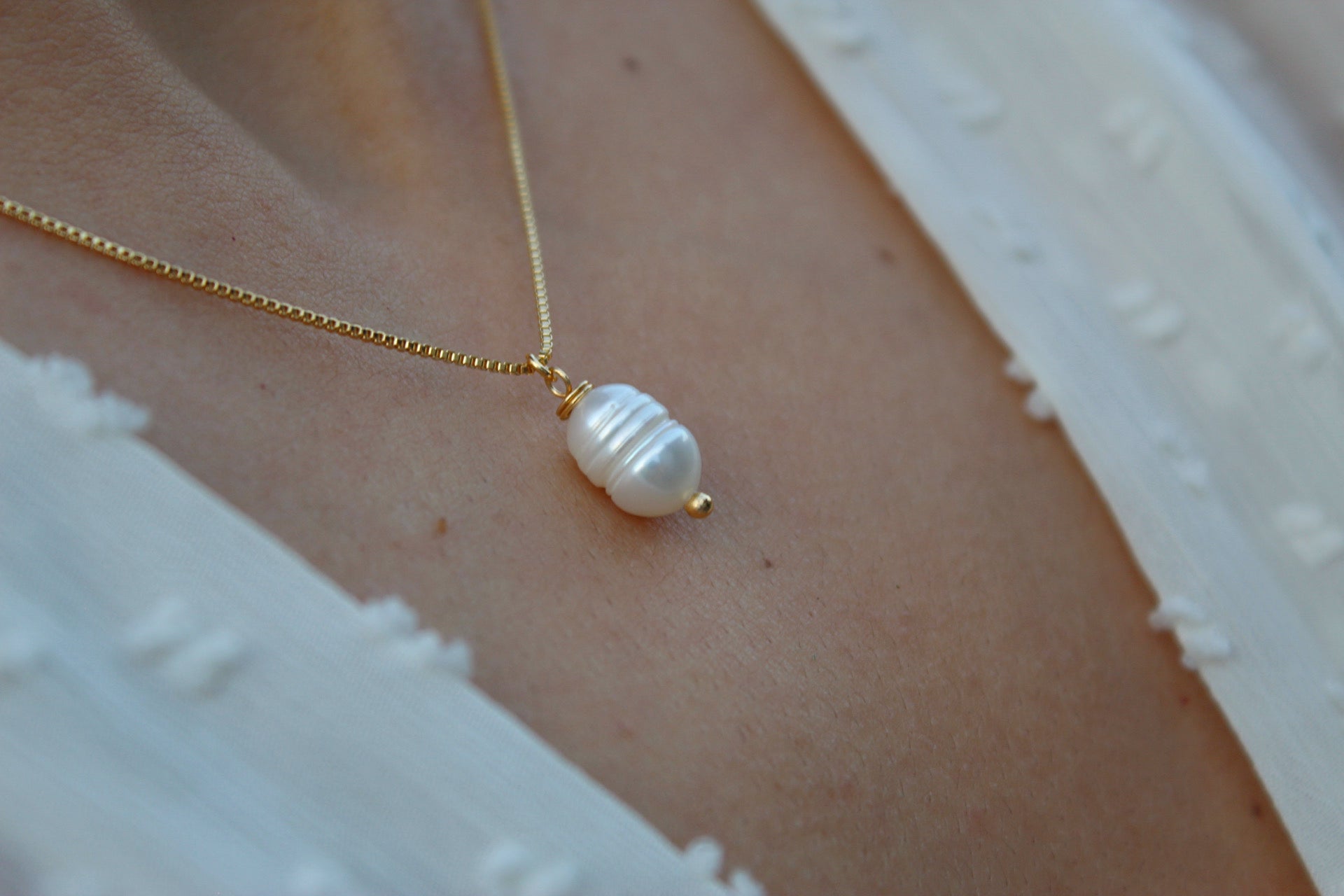 El collar Perla de Río de ANANDA GALEA®️ ha sido diseñado pensando en tu bienestar y estilo. Gracias a que es libre de níquel y plomo, cuidará tu piel. Fabricado con materiales nobles y de calidad superior, esta joya está enchapada en oro de 18 quilates.