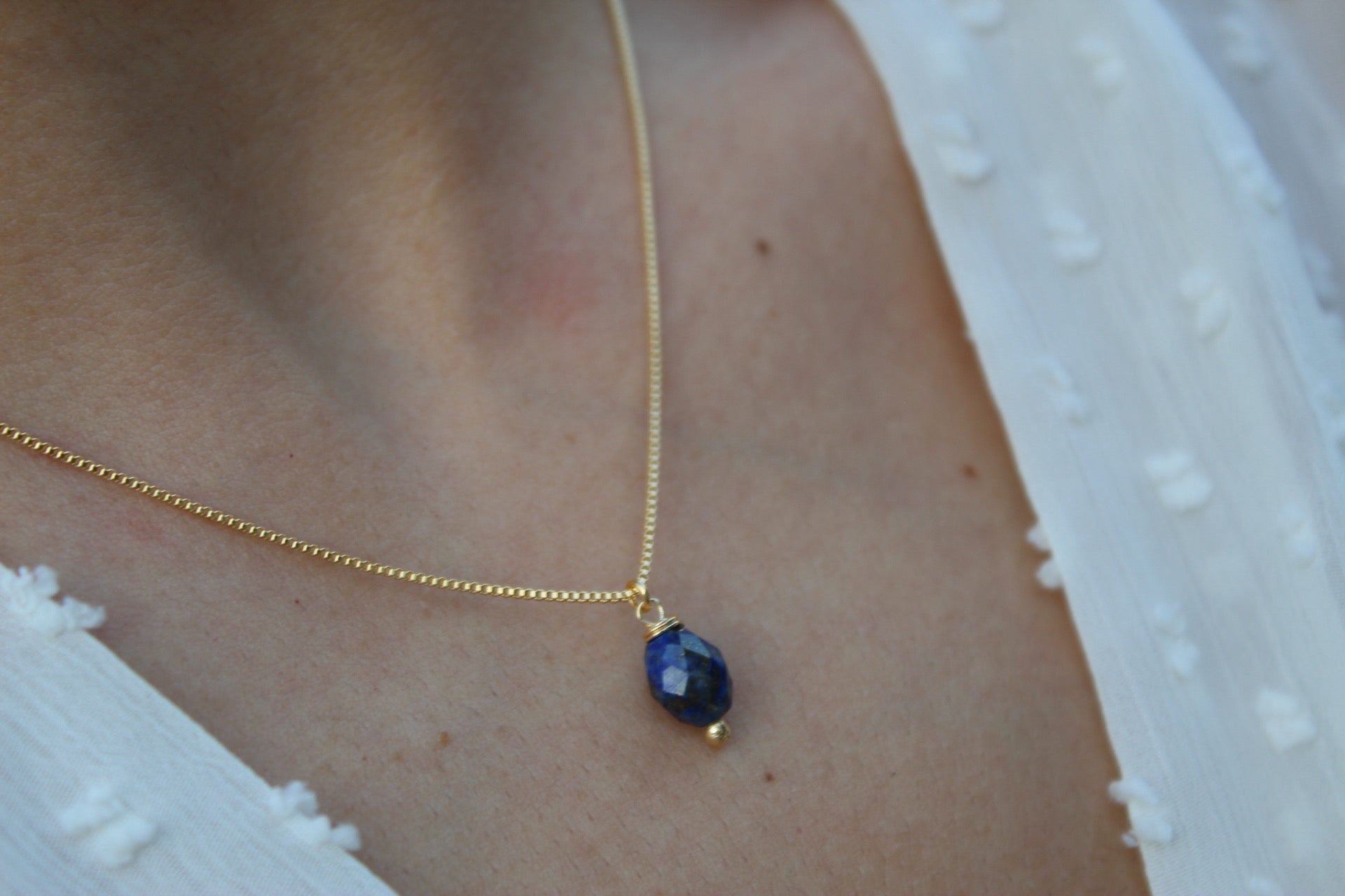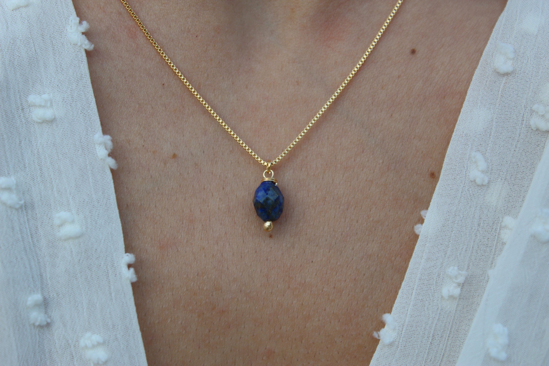 El collar Collar Piedra Gota Lapislázuli de ANANDA GALEA®️ ha sido diseñado pensando en tu bienestar y estilo. Gracias a que es libre de níquel y plomo, cuidará tu piel. Fabricado con materiales nobles y de calidad superior, esta joya está enchapada en oro de 18 quilates.