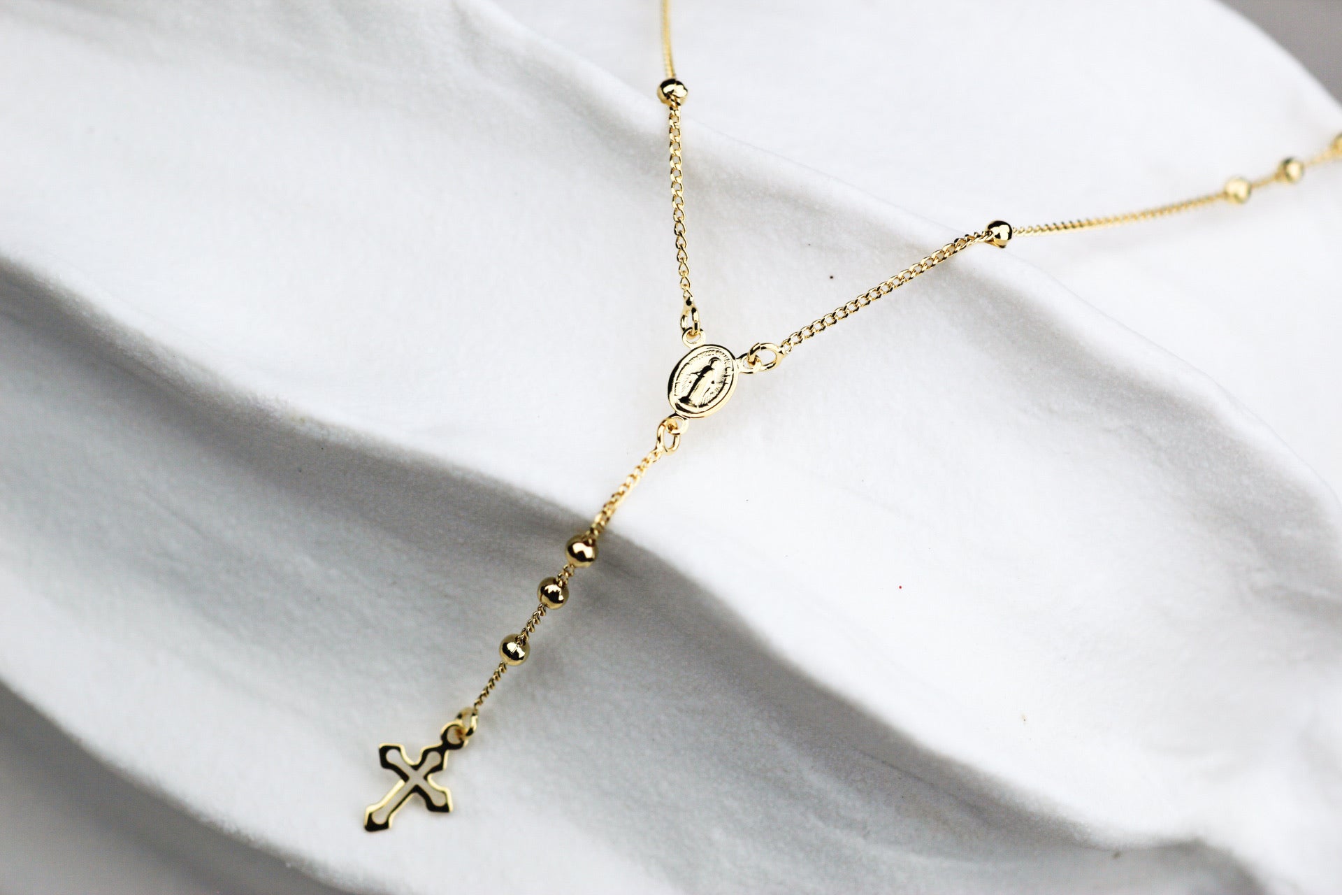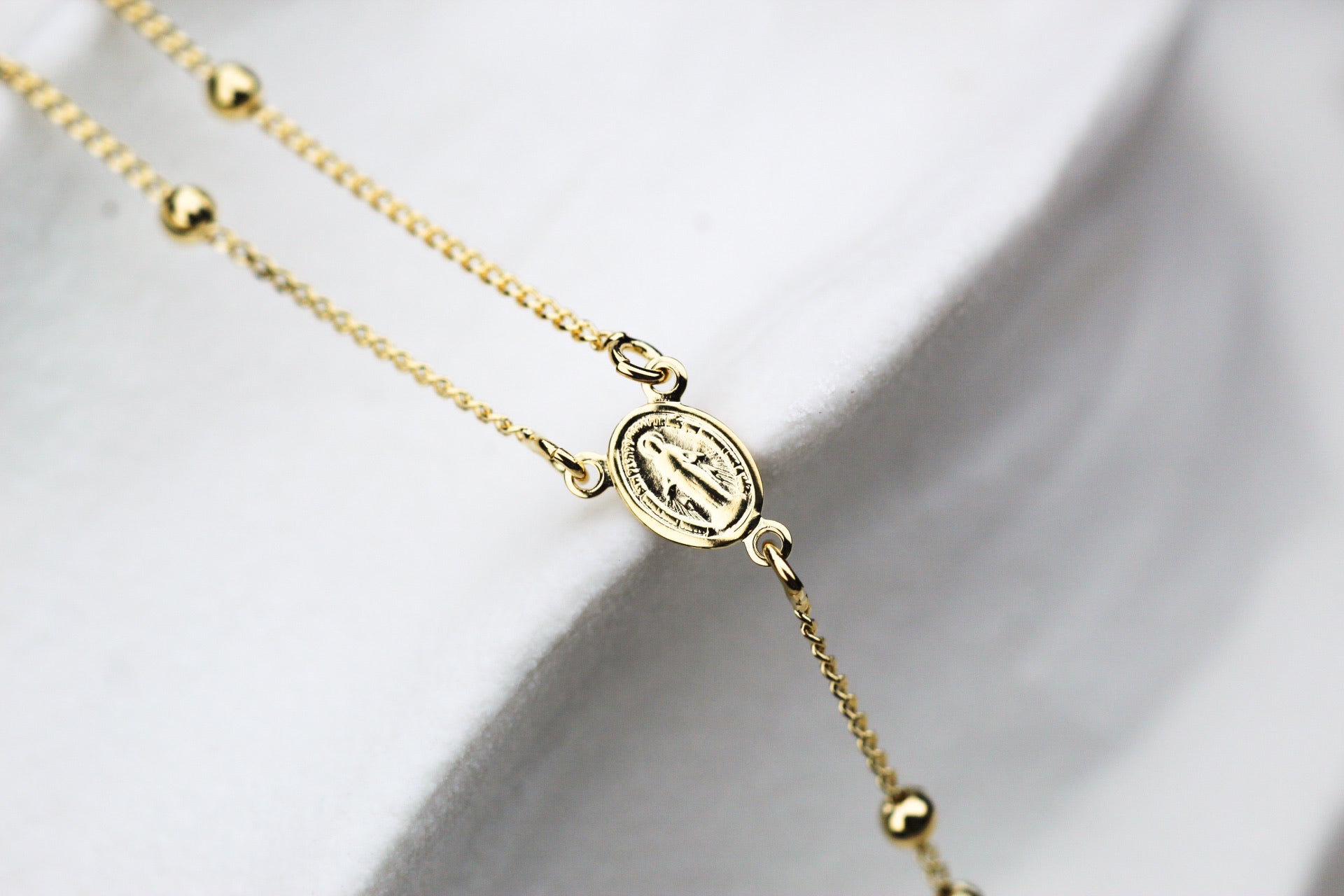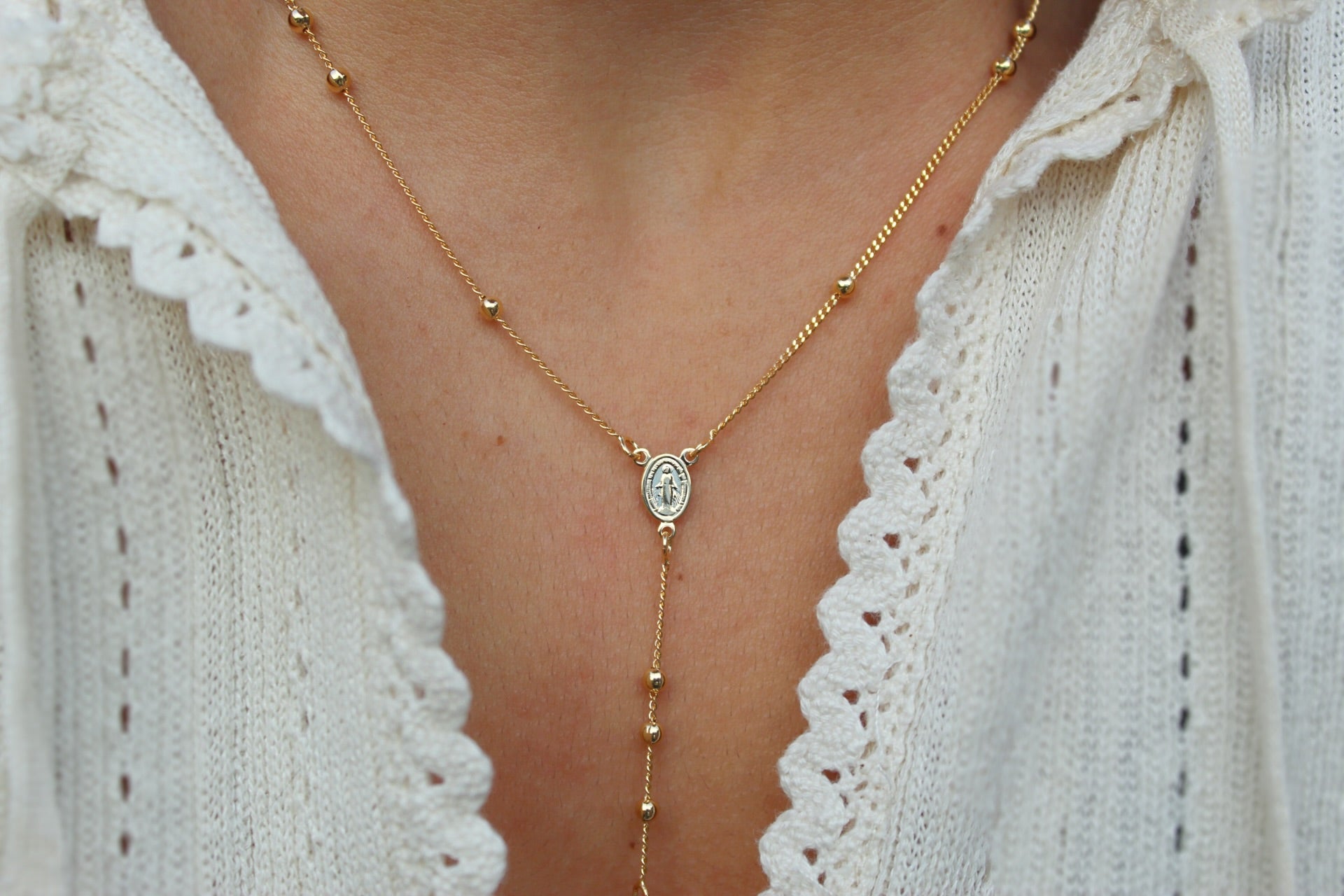El collar Rosario Virgen de ANANDA GALEA®️ ha sido diseñado pensando en tu bienestar y estilo. Gracias a que es libre de níquel y plomo, cuidará tu piel. Fabricado con materiales nobles y de calidad superior, esta joya está enchapada en oro de 18 quilates.