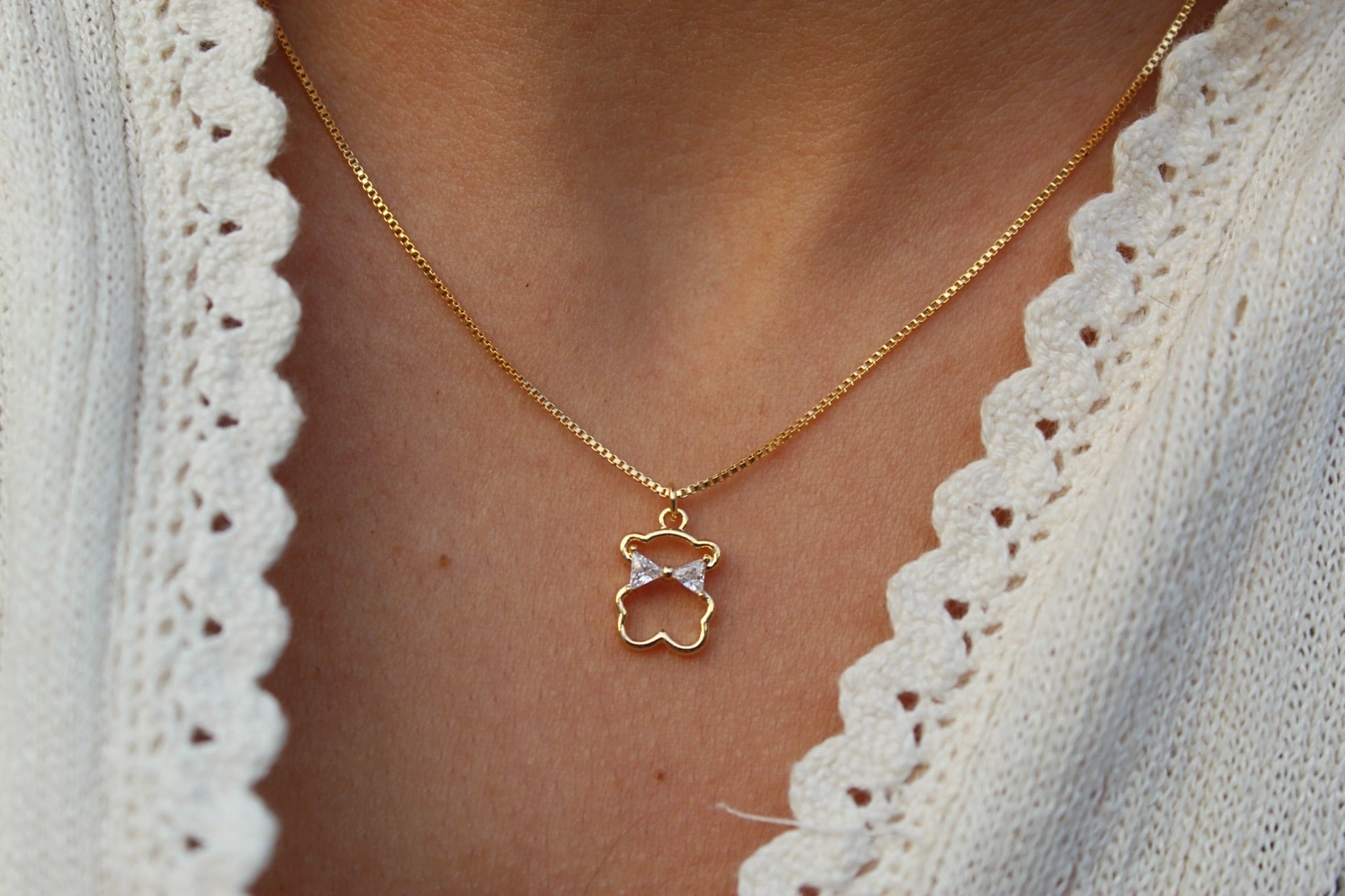 El collar Oso Lazo F. de ANANDA GALEA®️ ha sido diseñado pensando en tu bienestar y estilo. Gracias a que es libre de níquel y plomo, cuidará tu piel. Fabricado con materiales nobles y de calidad superior, esta joya está enchapada en oro de 18 quilates.