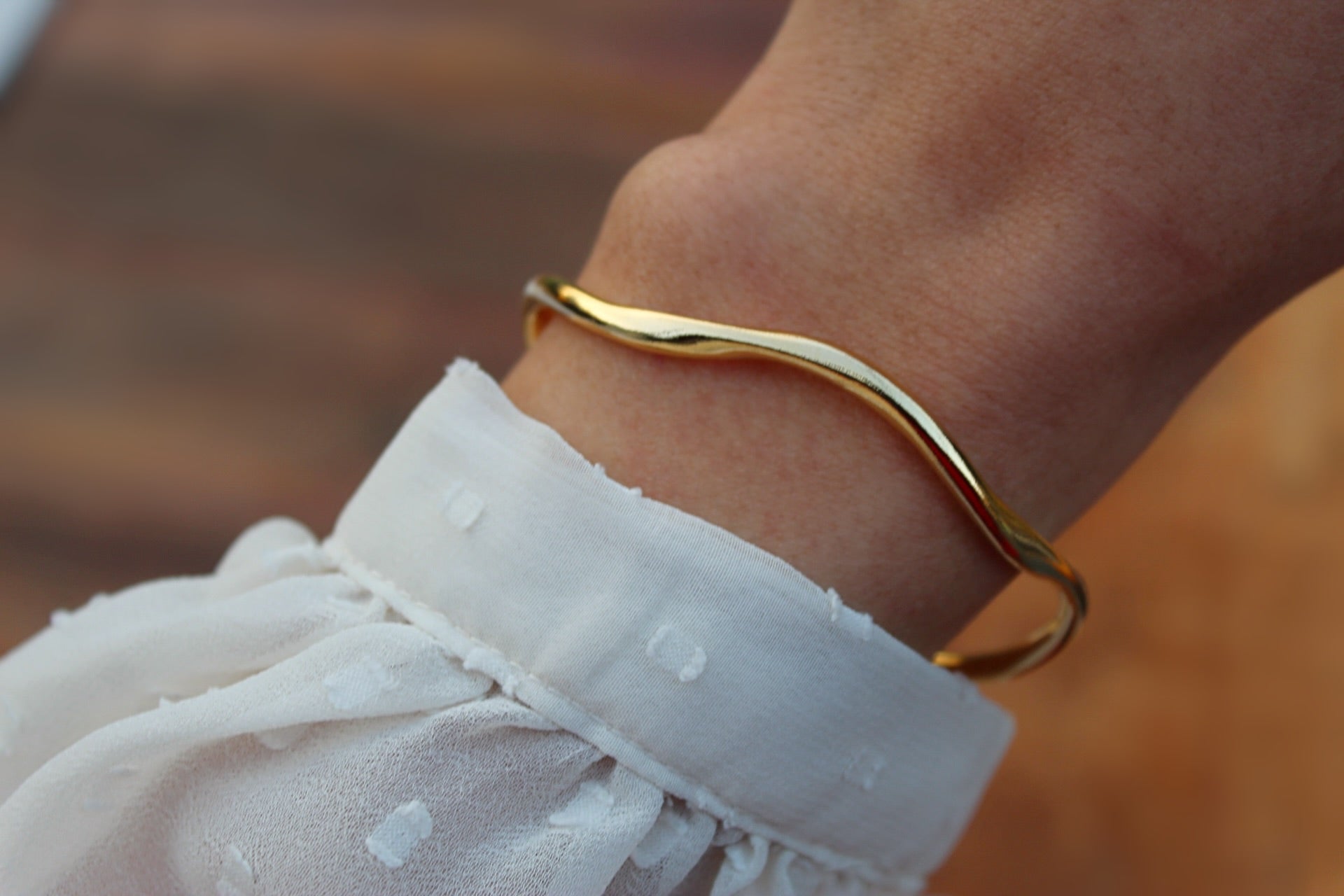 Esta es una esclava abierta, relativamente dúctil y semi ajustable. Si lo necesitas, puedes regular su medida con pequeñas presiones, haciendo la fuerza desde ambos bordes.