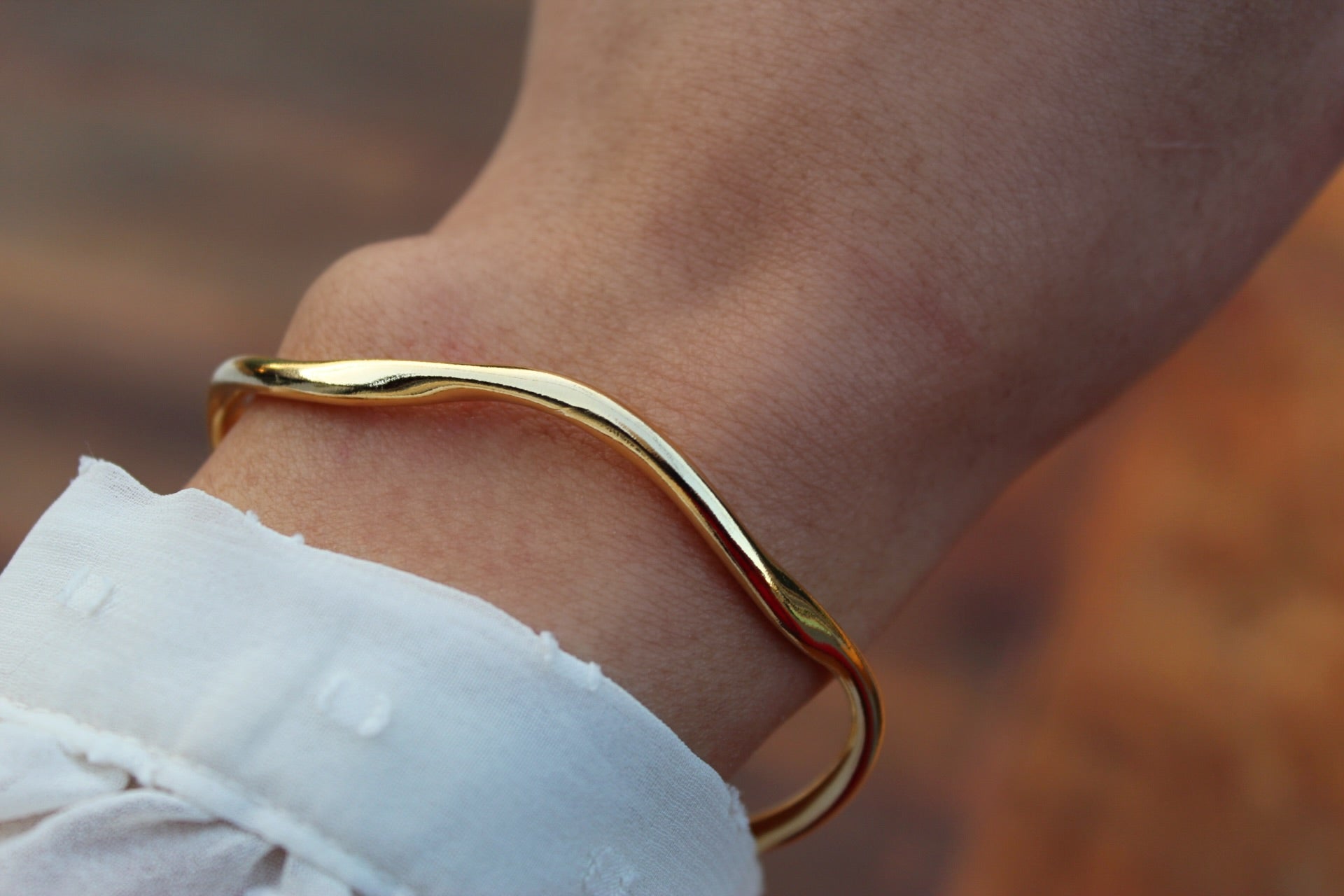 La esclava Central Tex de ANANDA GALEA®️ ha sido diseñada pensando en tu bienestar y estilo. Gracias a que es libre de níquel y plomo, cuidará tu piel. Fabricada con materiales nobles y de calidad superior, esta joya está enchapada en oro de 18 quilates.