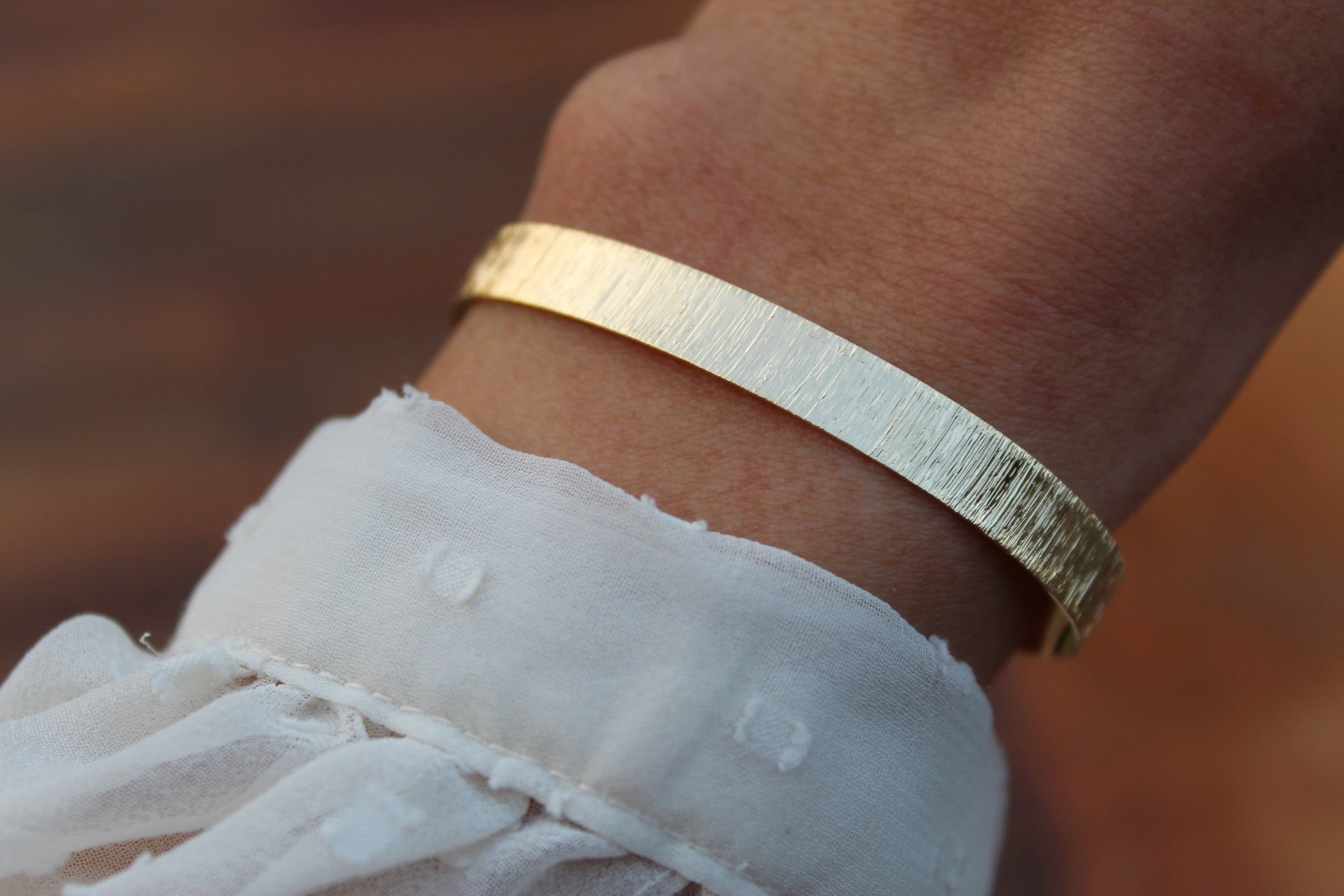 La esclava Satin Gru de ANANDA GALEA®️ ha sido diseñada pensando en tu bienestar y estilo. Gracias a que es libre de níquel y plomo, cuidará tu piel. Fabricada con materiales nobles y de calidad superior, esta joya está enchapada en oro de 18 quilates.