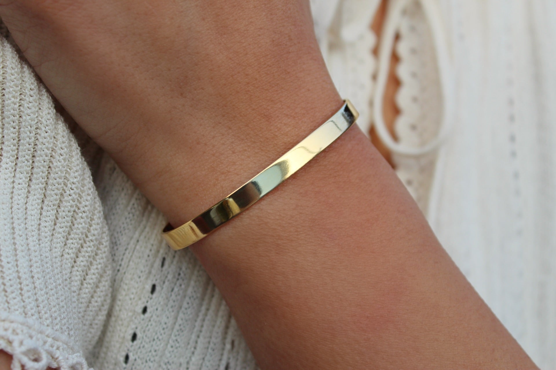 La esclava Silk ancha de ANANDA GALEA®️ ha sido diseñada pensando en tu bienestar y estilo. Gracias a que es libre de níquel y plomo, cuidará tu piel. Fabricada con materiales nobles y de calidad superior, esta joya está enchapada en oro de 18 quilates.