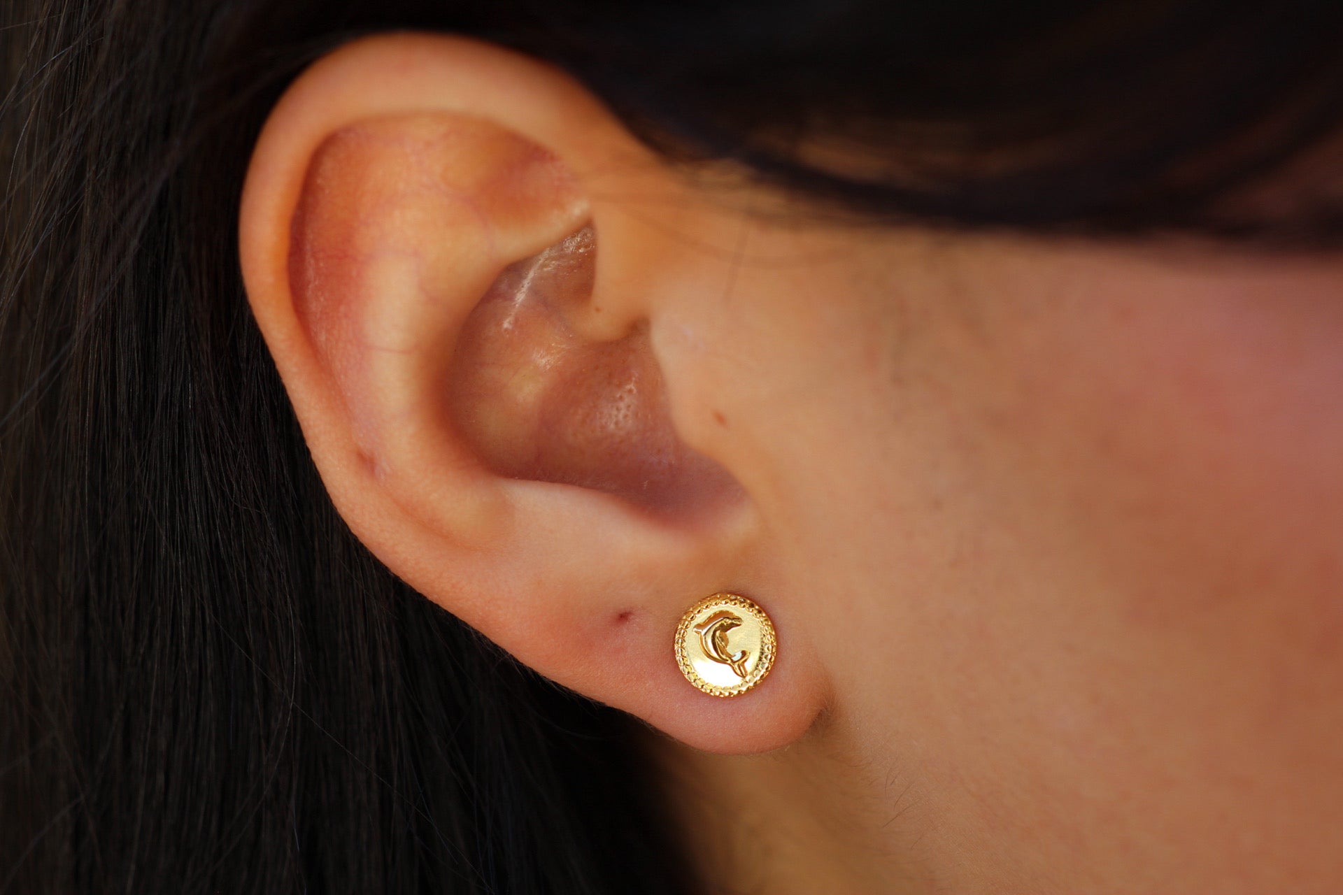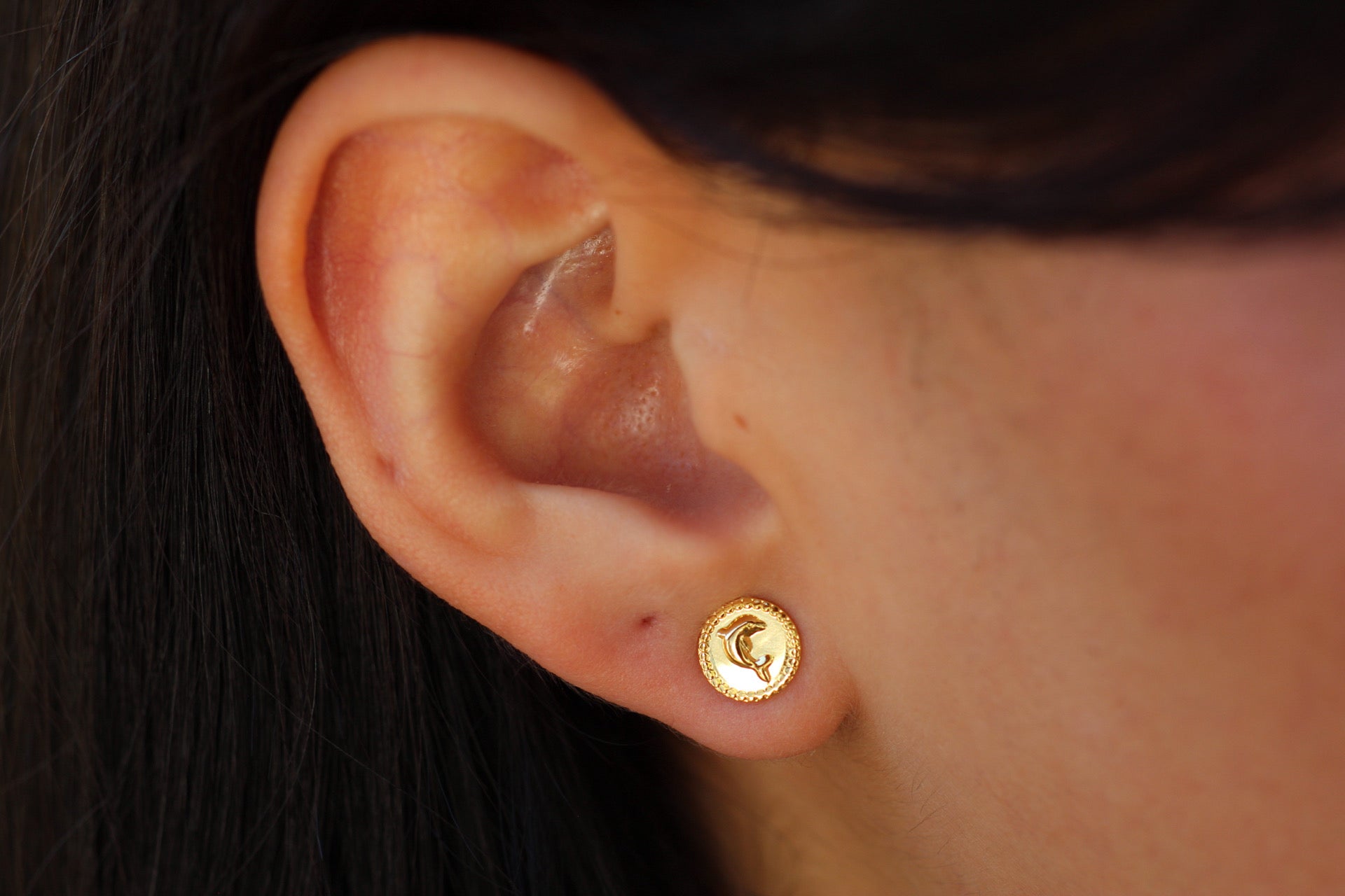 Los aros Delfín Medalla de ANANDA GALEA®️ han sido diseñados pensando en tu bienestar y estilo. Gracias a que están libres de níquel y plomo, cuidarán tu piel. Fabricados con materiales nobles y de calidad superior, esta joya está enchapada en oro de 18 quilates.